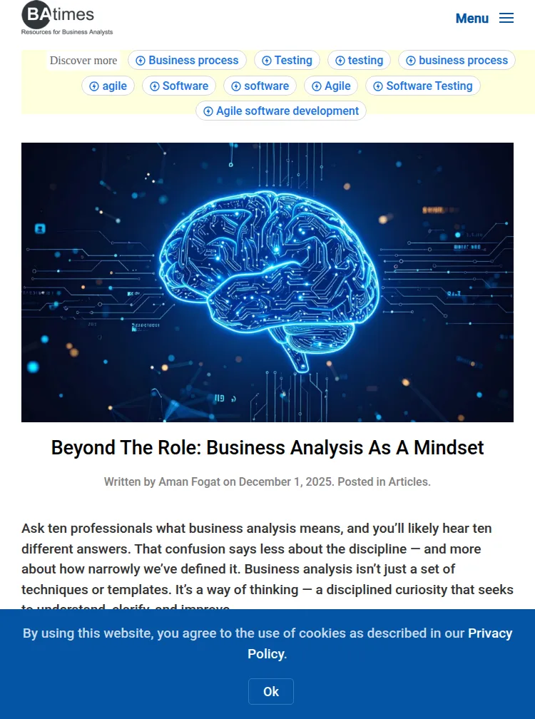 The post Beyond the Role: Business Analysis as a Mindset appeared first on Business Analyst Articles, Webinars, Templates, Jobs.
