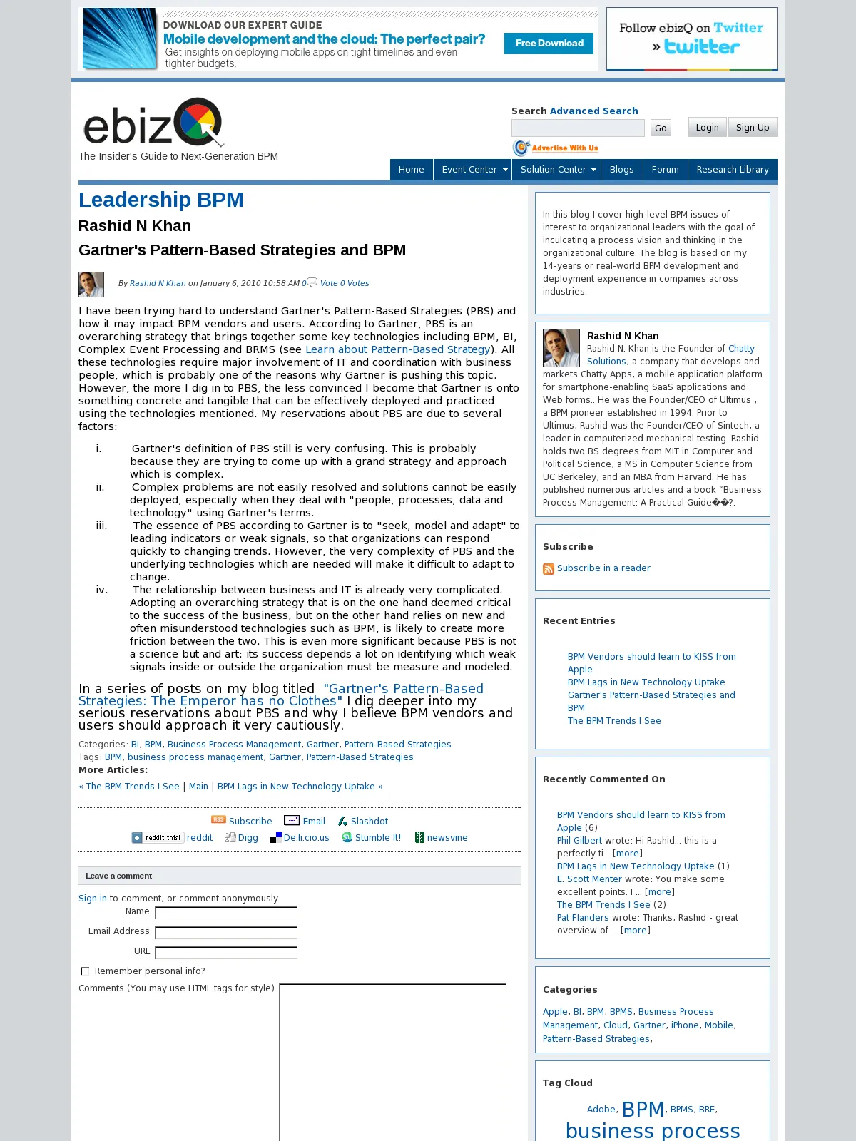I have been trying hard to understand Gartner's Pattern-Based Strategies (PBS) and how it may impact BPM vendors and users. According to Gartner, PBS is an overarching strategy that brings together some key technologies including BPM, BI, Complex Event Processing...