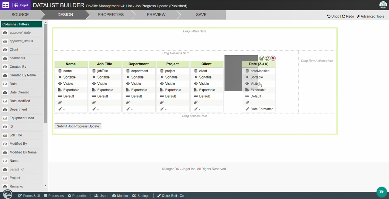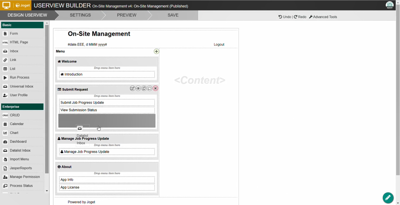 | Datalist Builder - design the layout of data displayed with features such as sorting, filtering and exporting. |