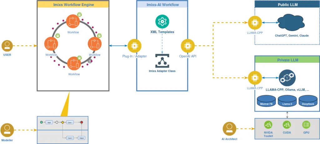 imixs-ai-workflow: The core module providing Jakarta EE services and adapter classes to access LLM servers based on the OpenAI API specification. This is where the AI Assistant Adapter lives.