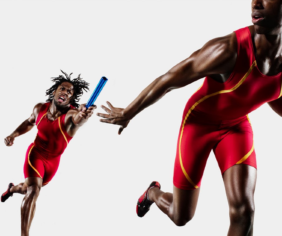 In the coordination pattern 'Relay race', there is someone that starts the process, following a certain trigger (an incoming e-mail, order form, etc). The person executes a number of tasks, and then hands over the execution to a next person, and so on.