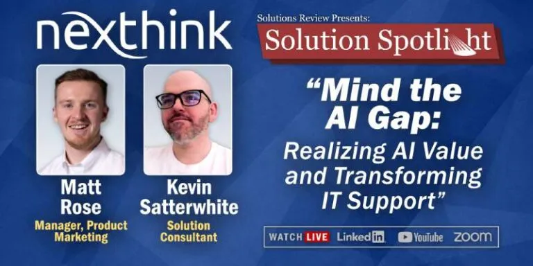 Solutions Review’s Solution Spotlight with Nexthink is part of an exclusive webinar series for enterprise business software users. This event will showcase how companies can put AI to practical use by improving visibility, reducing support costs, and creating a more seamless digital employee experiences.