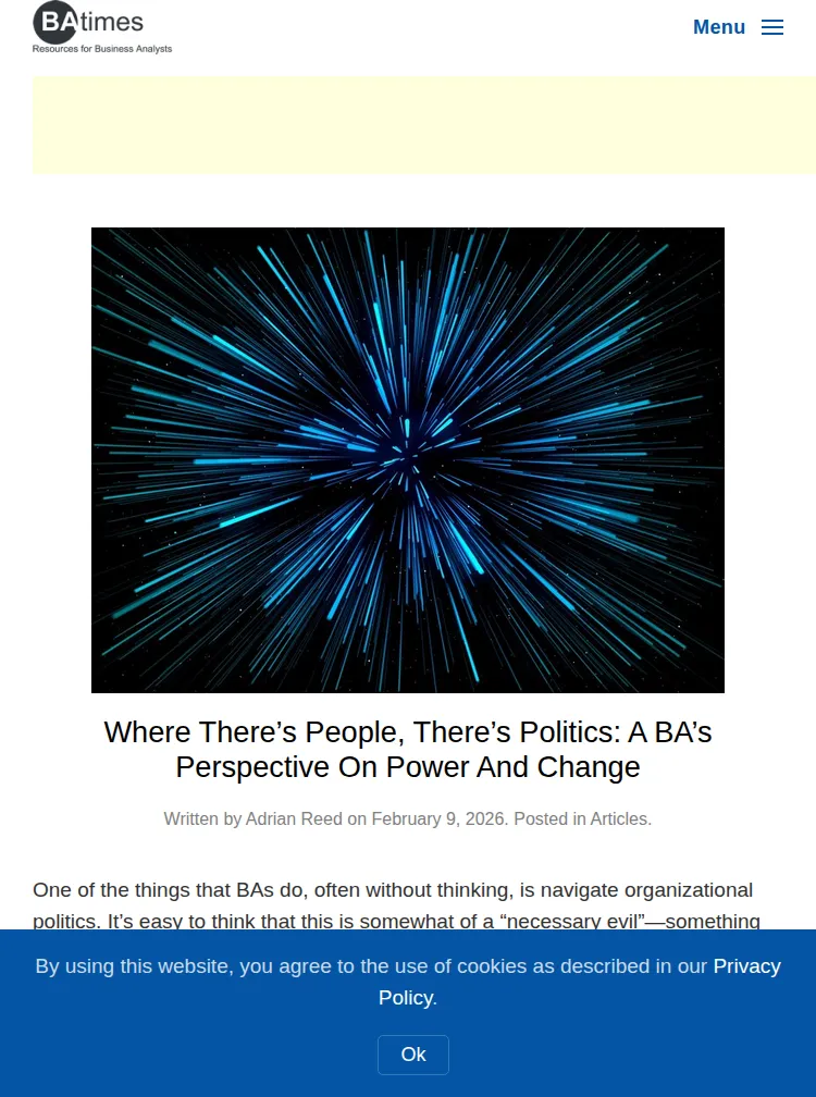 The post Where There’s People, There’s Politics: A BA’s Perspective on Power and Change appeared first on Business Analyst Articles, Webinars, Templates, Jobs.